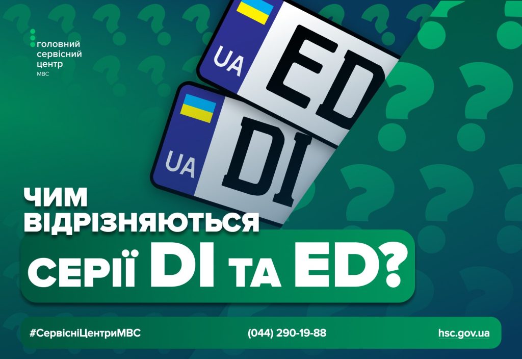 Серії DI та ED належать до номерних знаків, які присвоюються транспортним засобам залежно від способу отримання адміністративної послуги. На відміну від номерів що видаються в ТСЦ МВС, де літери вказували на регіон реєстрації, ці серії не мають територіальної прив’язки.