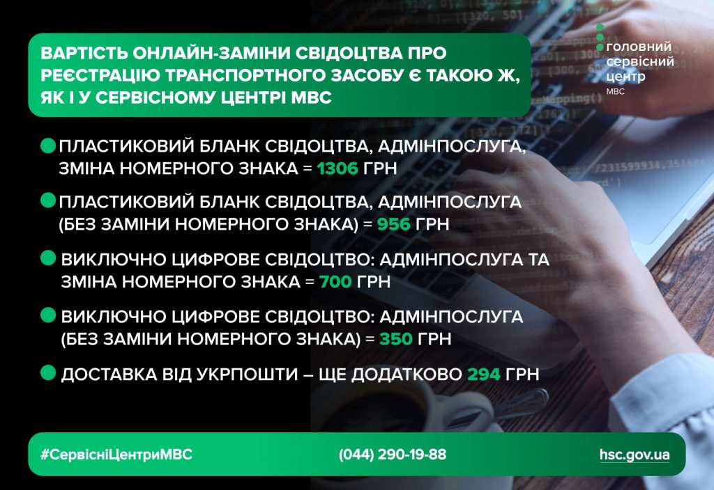 Якщо ж обрали виключно електронне свідоцтво, то воно коштуватиме – 700 грн – за адмінпослугу та номерний знак, якщо він змінюється (без урахування комісії банку). Та 350 грн вартує обмін свідоцтва на електронне й без заміни номерного знаку.