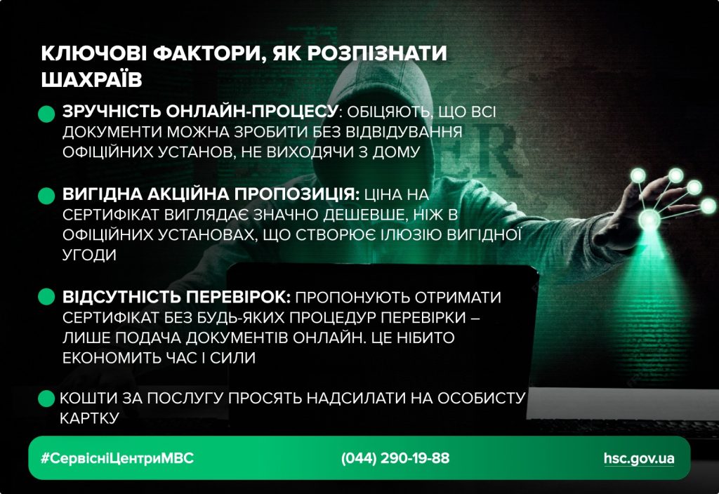 - відсутність перевірок: пропонують отримати сертифікат без будь-яких процедур перевірки – лише подача документів онлайн. Це нібито економить час і сили;