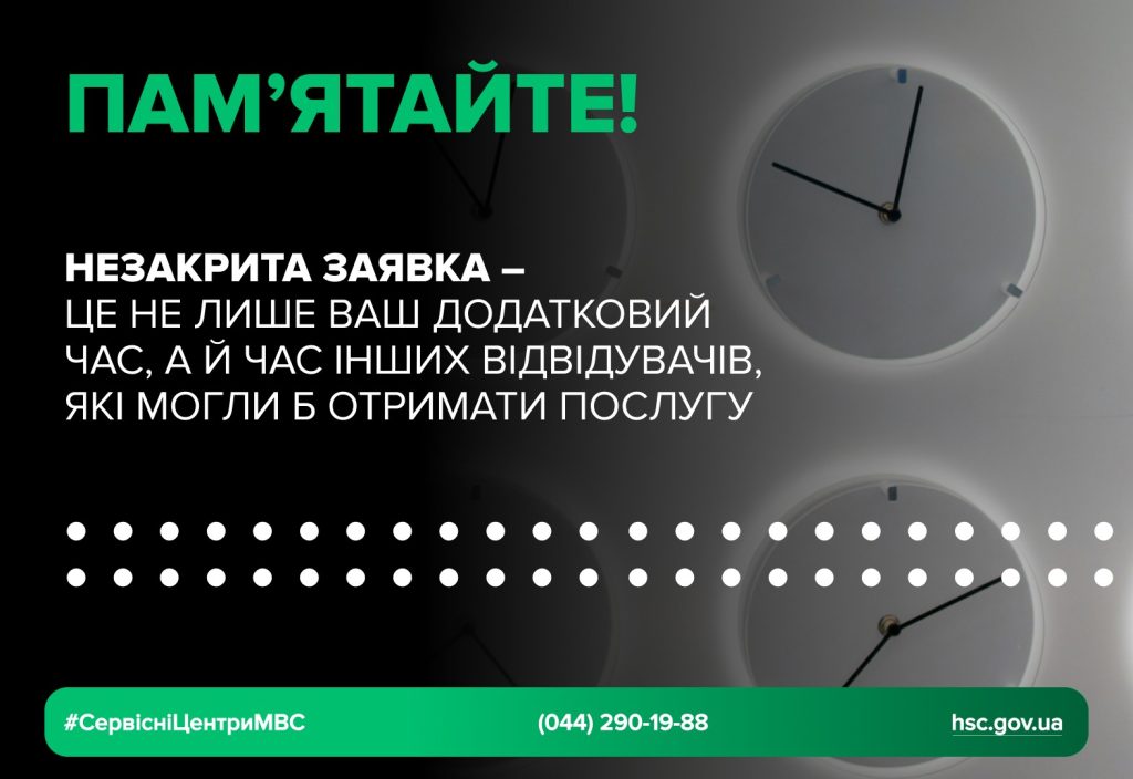 Пам’ятайте: незакрита заявка – це не лише ваш додатковий час, а й час інших відвідувачів, які могли б отримати послугу.