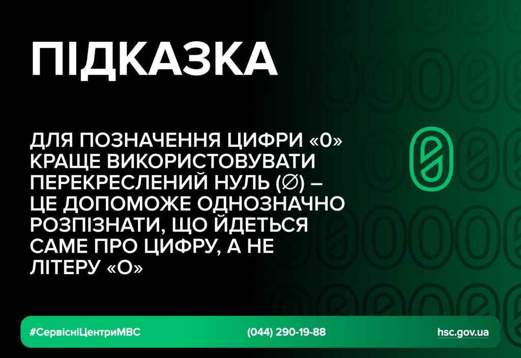 Символи «0» (нуль) і «О» (літера) візуально дуже схожі, особливо при рукописному заповненні заяви. Проте для фахівців, які обробляють документи, а головне – для автоматизованих систем, це різні символи.