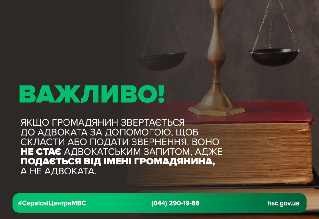 Сервісні центри МВС закликають громадян розрізняти поняття «адвокатський запит» і «звернення громадян» та користуватися своїми правами свідомо, безоплатно, а головне без зайвих посередників.