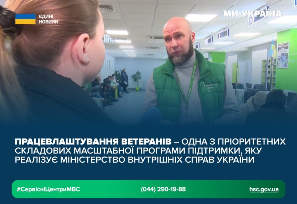 У сюжеті зазначається, що працевлаштування ветеранів – одна з пріоритетних складових масштабної програми підтримки, яку реалізує Міністерство внутрішніх справ України. І наразі ветерани, які у пошуку роботи, доволі часто звертаються до сервісних центрів МВС.