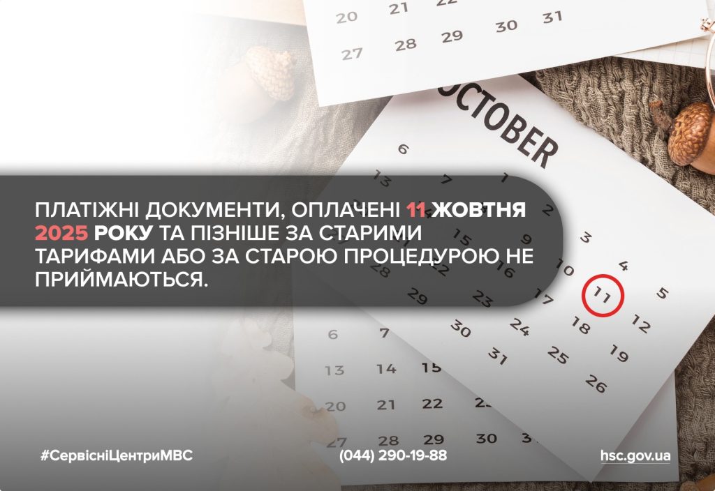 Звертаємо увагу: платіжні документи, оплачені 11 жовтня 2025 року та пізніше за старими тарифами або за старою процедурою не приймаються. У таких випадках потрібно повторно провести оплату за оновленими правилами.