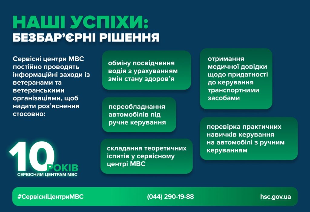 Сервісні центри МВС постійно проводять інформаційні заходи із ветеранами та ветеранськими організаціями, аби розповісти їм про можливості отримати посвідчення водія. Під час зустрічей надають роз’яснення щодо: