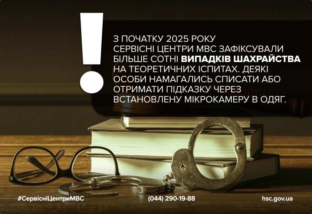 З початку 2025 року сервісні центри МВС зафіксували більше сотні випадків шахрайства на теоретичних іспитах. Деякі особи намагались списати або отримати підказку через встановлену мікрокамеру в одяг. Аби зупинити це, у сервісних центрах МВС ми почали розміщувати пластикові панелі перед екзаменаційним монітором. Вони роблять неможливим фіксацію зображення сторонніми технічними засобами.