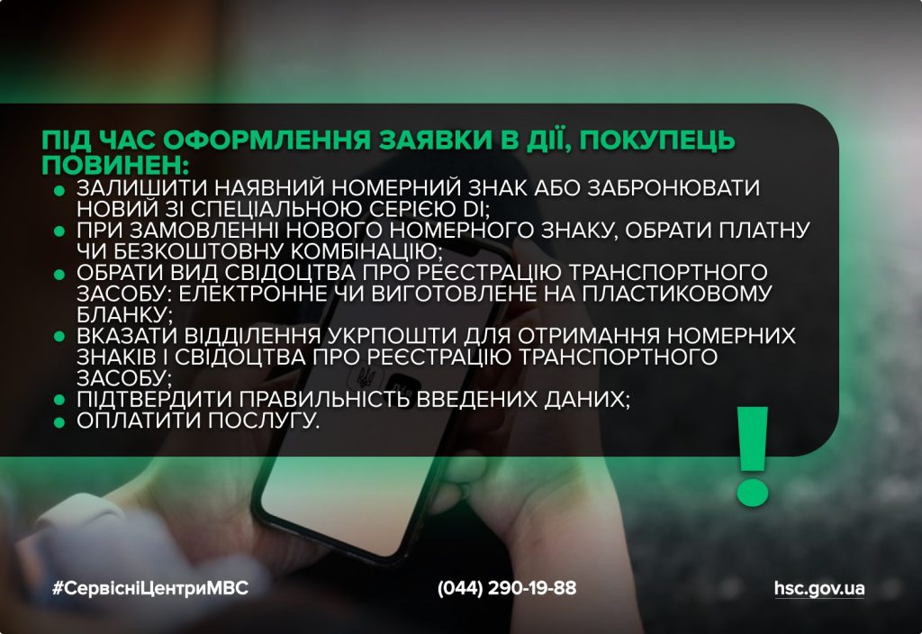 • вказати відділення Укрпошти для отримання номерних знаків і свідоцтва про реєстрацію транспортного засобу;