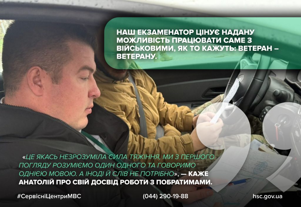Наш екзаменатор цінує надану можливість працювати саме з військовими, як то кажуть: ветеран – ветерану. «Це якась незрозуміла сила тяжіння, ми з першого погляду розуміємо один одного та говоримо однією мовою. А іноді й слів не потрібно», — каже Анатолій про свій досвід роботи з побратимами.