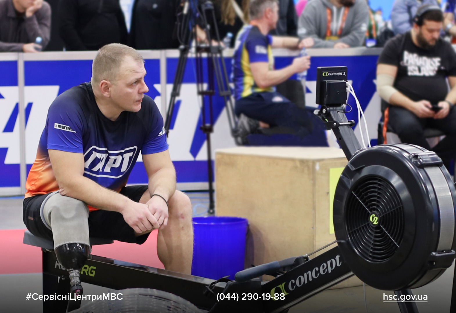 Колеги Костянтина з ТСЦ МВС Тернополя також долучилися до підтримки – вони записали для нього тепле відеозвернення, яке було показано на великому екрані перед початком змагань з веслування.