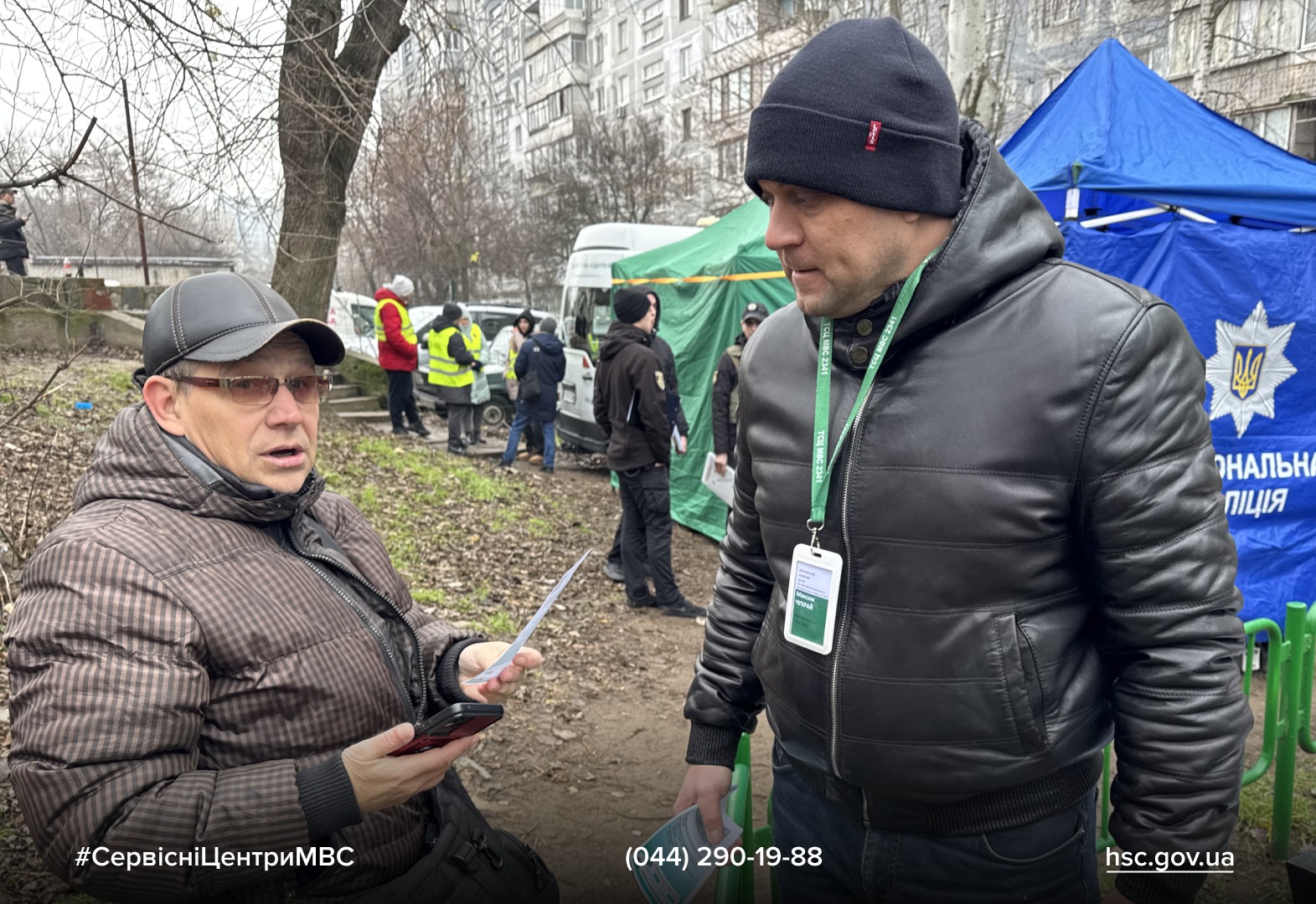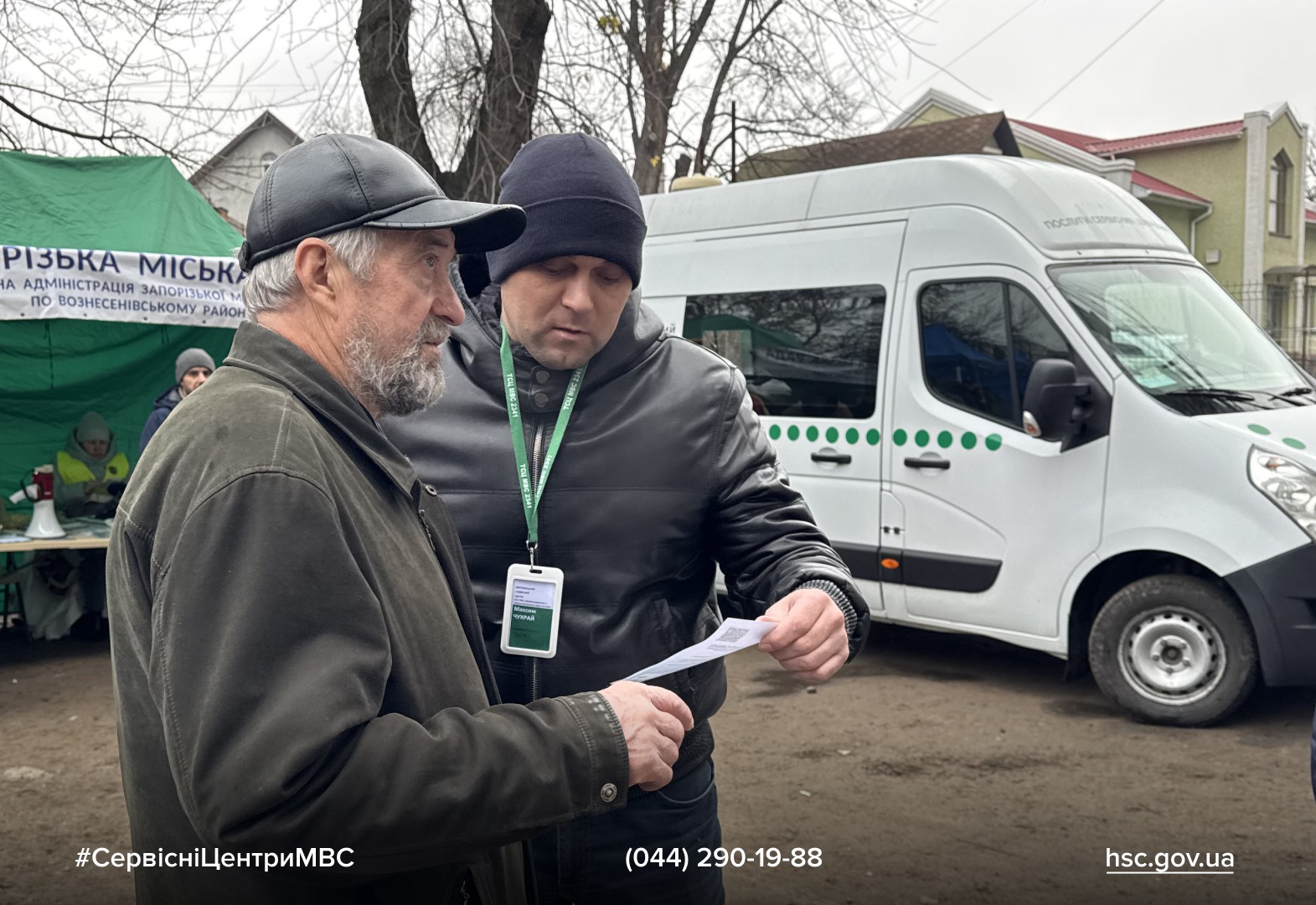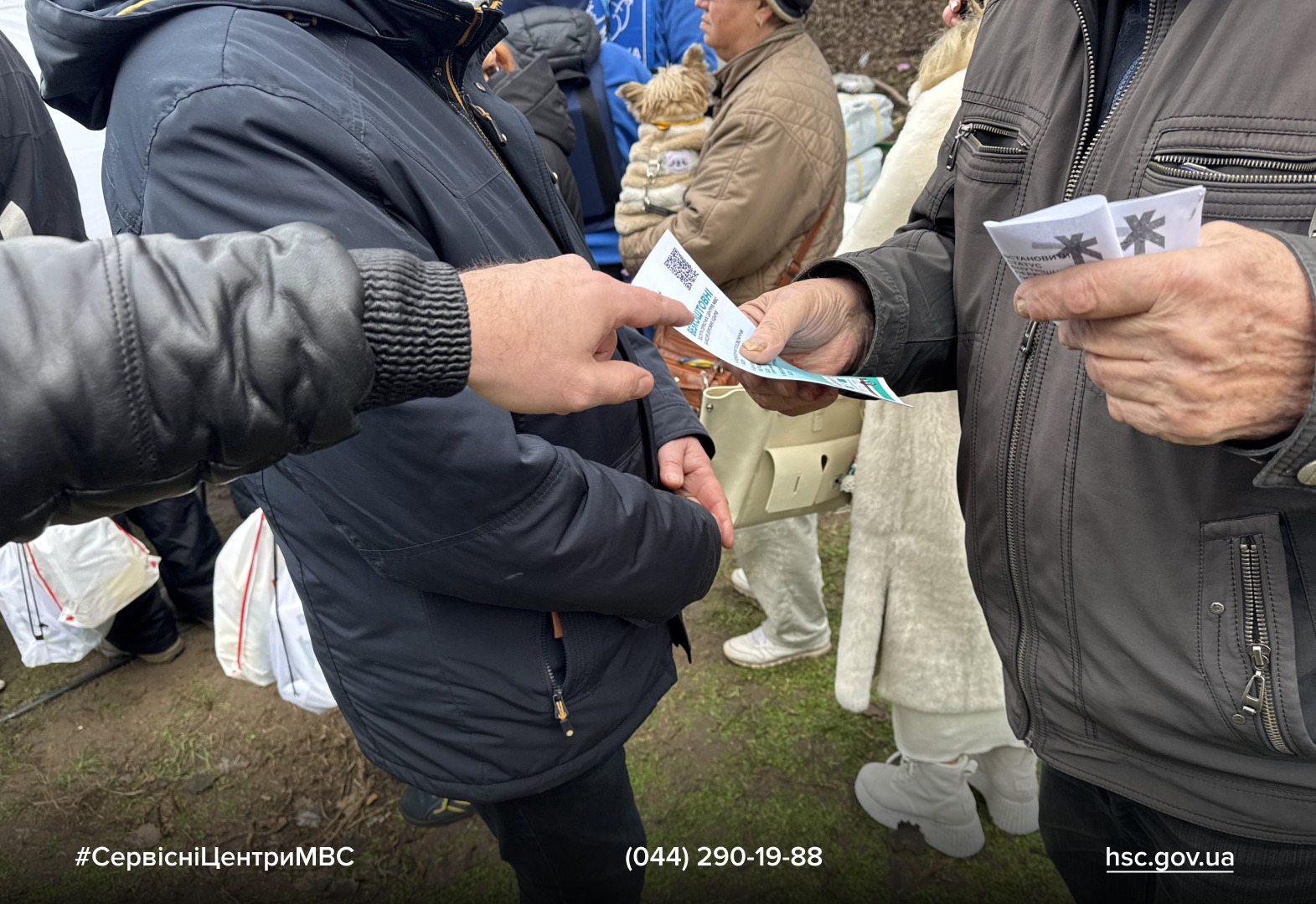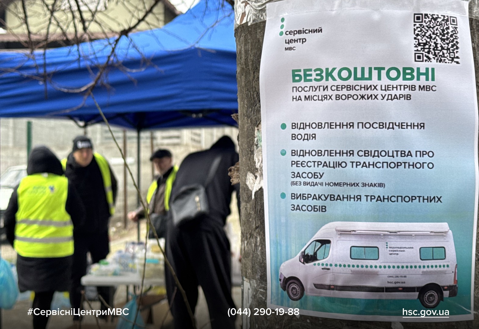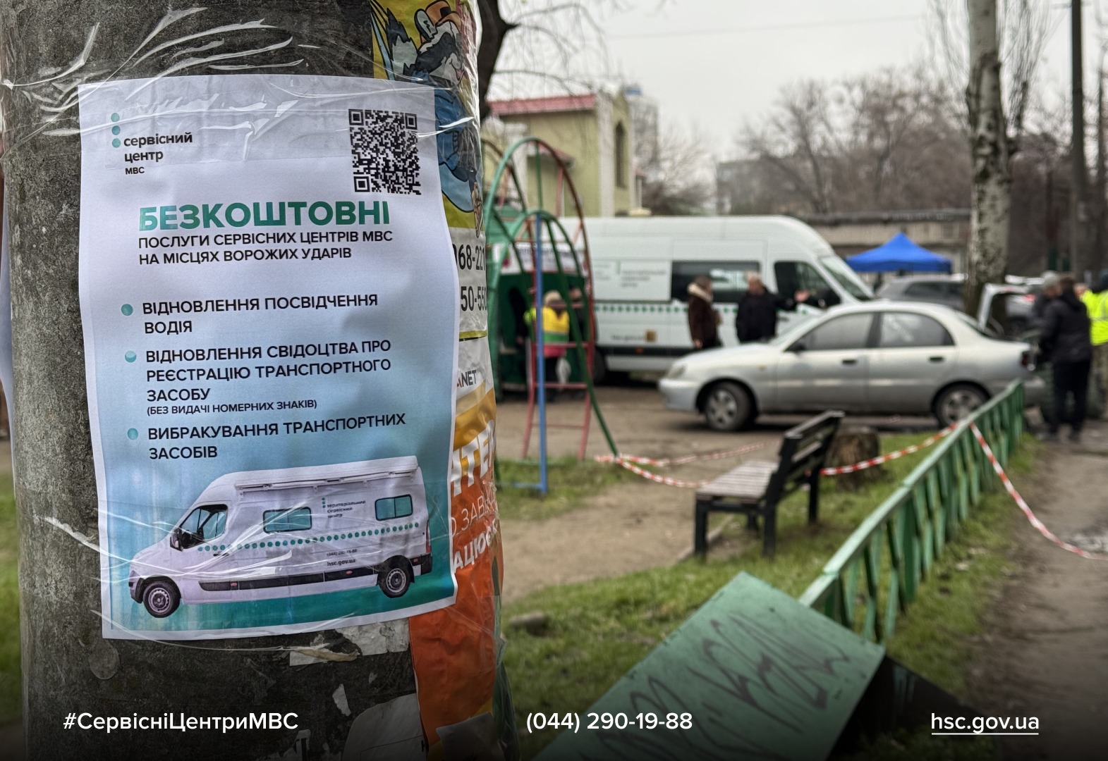 Під час роботи мобільного сервісного центру МВС працівники також розвішували оголошення та роздавал флаєри з QR-кодами. Вони дозволяють людям швидко отримати інформацію про доступні послуги на місцях подій та знайти контакт із мобільним сервісним центром МВС навіть у хаосі після обстрілу. Такий підхід допомагає громадянам зорієнтуватися та скористатися державними послугами максимально оперативно.