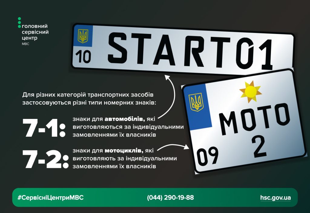 Для різних категорій транспортних засобів застосовуються різні типи індивідуальних номерних знаків:
