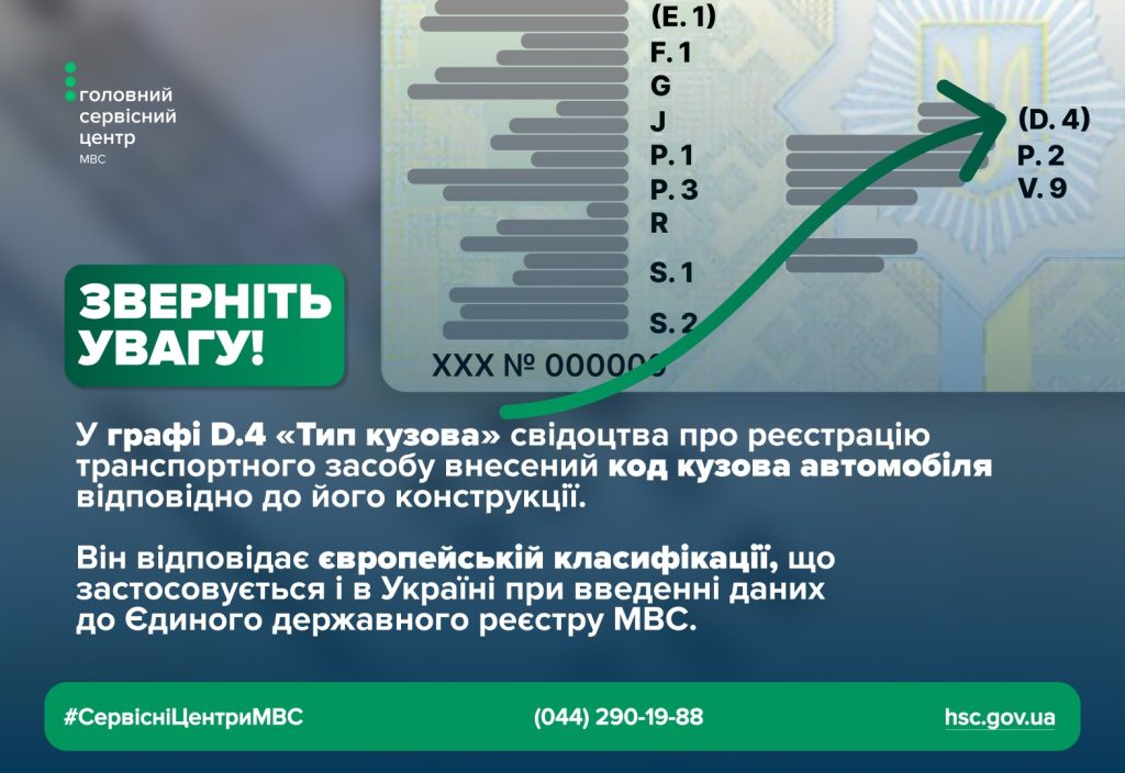 Усі відомості про транспортний засіб, включно з кодами кузову, вносяться до Єдиного державного реєстру МВС під час першої реєстрації авто або при внесенні змін до документів. За потреби адміністратори сервісних центрів МВС завжди готові допомогти з розшифровкою значень та надати консультацію.