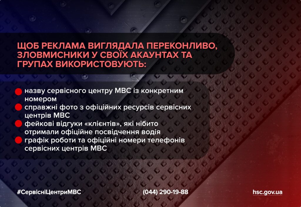 Найголовніша обіцянка, на яку ведуться більшість людей: шахраї запевняють, що нібито працюють або мають «своїх перевірених людей» у сервісному центрі МВС. Мовляв, за фінансову винагороду вони виготовлять офіційне посвідчення водія, яке буде відображатись в реєстрах. Насправді ж водійські документи, придбані в інтернеті, не відображаються у Кабінеті водія та в застосунку Дія.