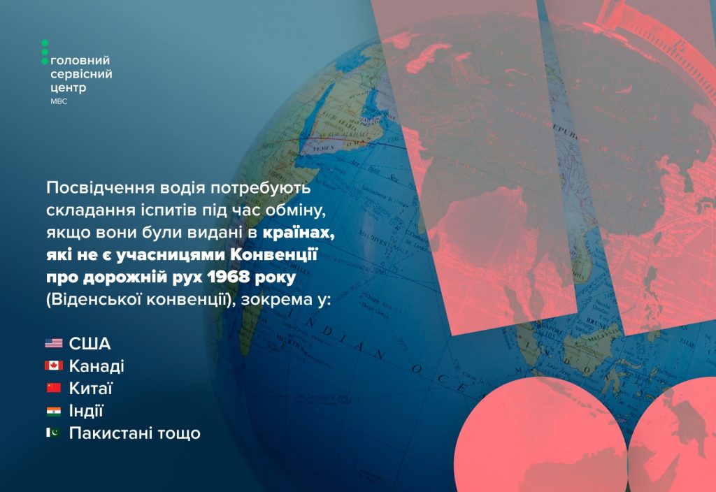 Громадяни України можуть обміняти іноземне посвідчення водія без складання теоретичного та практичного іспитів, якщо документ виданий у державі, що є учасницею Конвенції про дорожній рух 1968 року (Віденська конвенція).