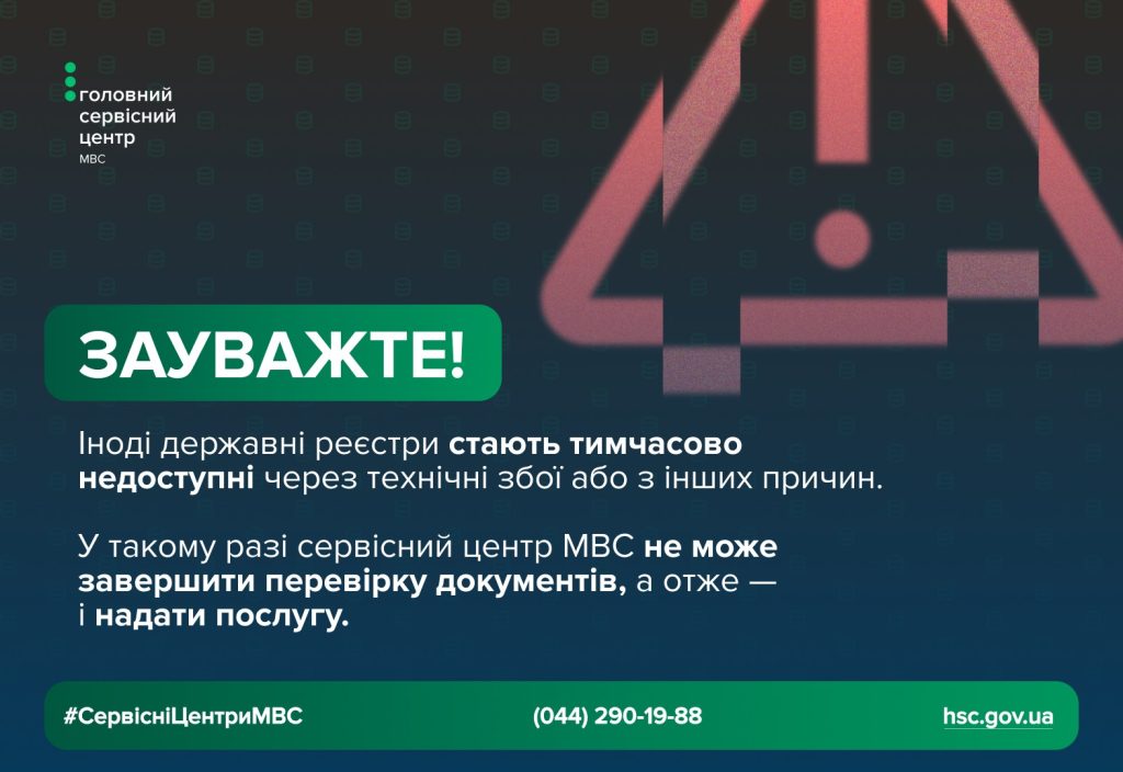Іноді трапляються технічні збої або тимчасова недоступність окремих державних реєстрів. У такому разі сервісний центр МВС не може завершити перевірку документів, а отже — і надати послугу.