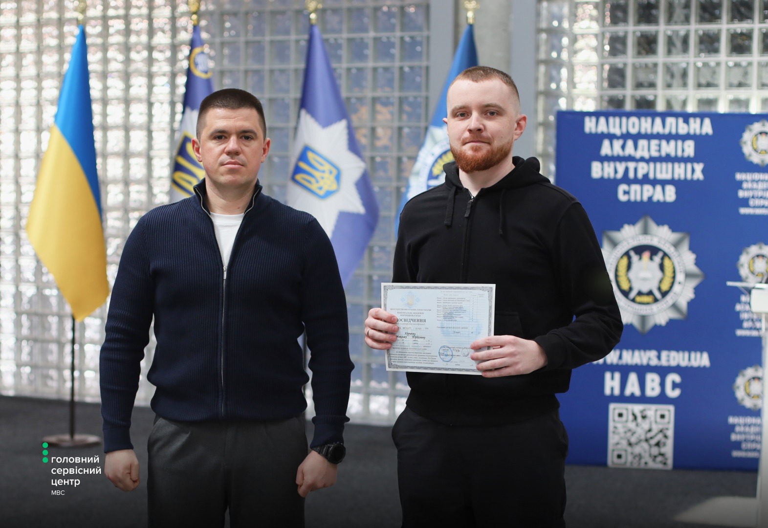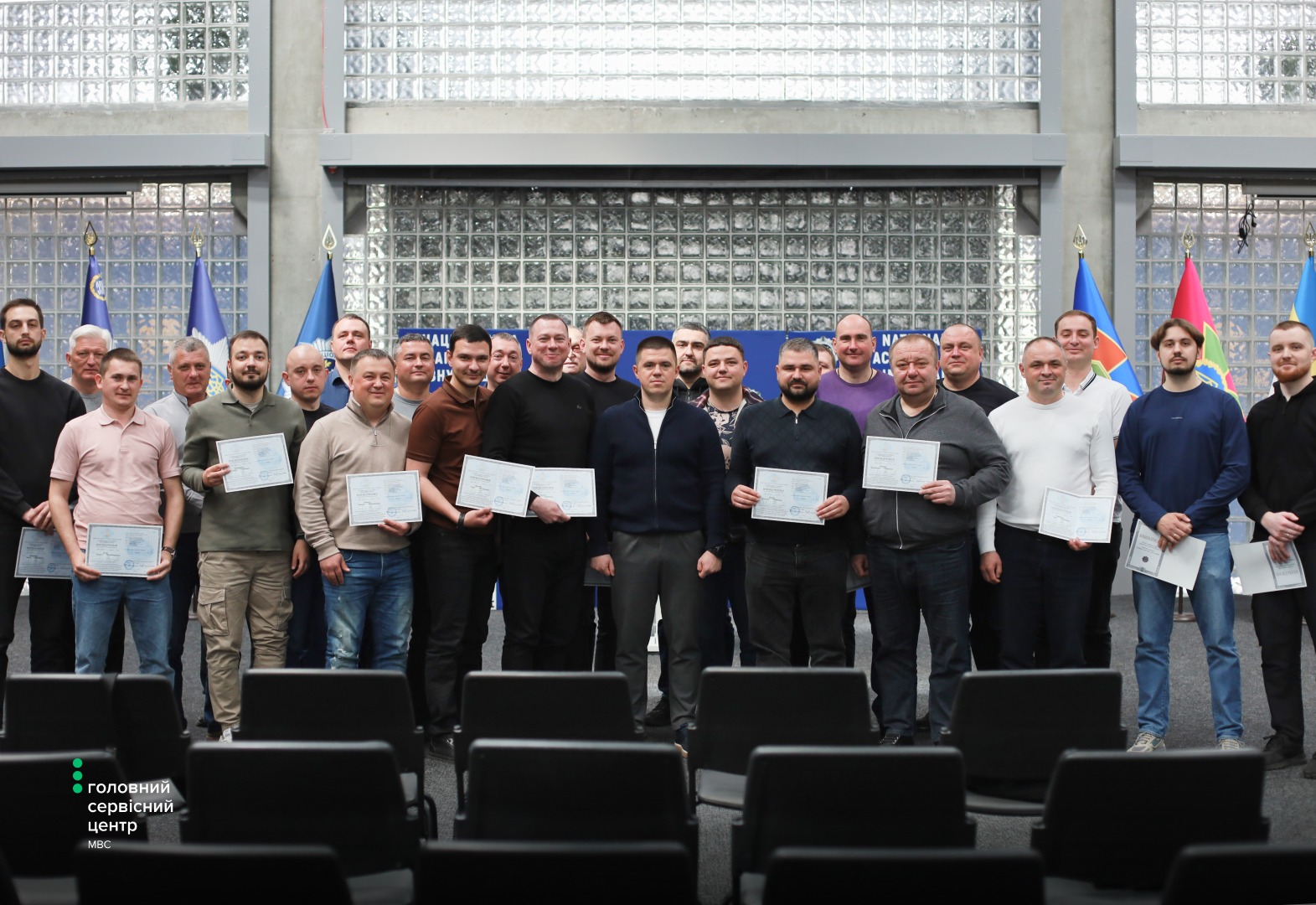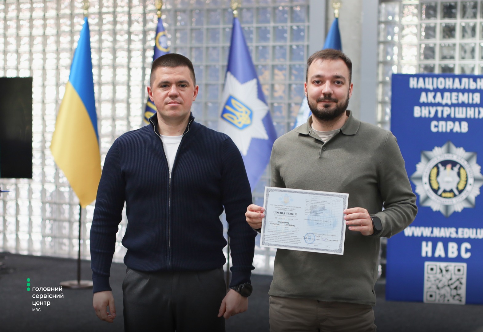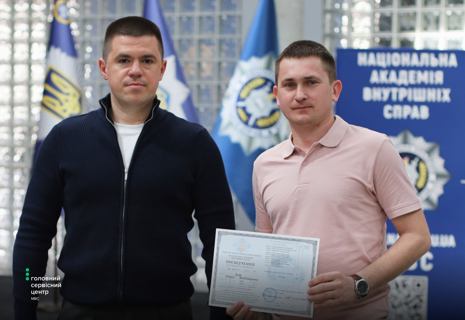 Після завершення курсу екзаменатори отримали посвідчення про підвищення кваліфікації з рук Руслана Жука — першого заступника начальника Головного сервісного центру МВС.