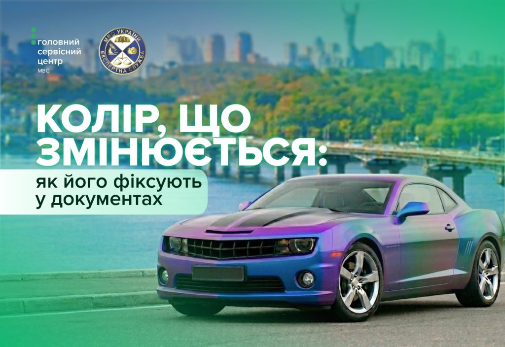 Сучасні технології фарбування транспортних засобів дозволяють створювати покриття, що змінюють відтінок залежно від кута огляду та освітлення. Так звані автомобілі-хамелеони привертають увагу, однак під час їх реєстрації або перереєстрації виникає логічне питання: який саме колір зазначати в документах? Як визначають колір транспортного засобу  Фахівці сервісних центрів МВС спільно з Експертною службою МВС роз’яснюють: визначення кольору транспортного засобу здійснюється завдяки експертному дослідженню відповідно до встановлених вимог. Згідно з Порядком державної реєстрації транспортних засобів, затвердженим постановою Кабінету Міністрів України № 1388, до реєстраційних документів обов’язково вносяться основні характеристики транспортного засобу, зокрема його колір. Водночас у випадках, коли визначення кольору є ускладненим (як із покриттям типу «хамелеон»), залучаються фахівці Експертної служби МВС. Який колір вноситься до документів  Під час дослідження експерти враховують домінуючий колір кузова транспортного засобу — тобто той, який переважає при звичайному сприйнятті за денного освітлення. Саме цей базовий колір і вноситься до свідоцтва про реєстрацію. «Незважаючи на візуальні ефекти зміни відтінків, у документах фіксується один основний колір. Це необхідно для ідентифікації транспортного засобу та уніфікації обліку», — зазначають фахівці сервісних центрів МВС. Якщо ж транспортний засіб має комбіноване фарбування або кілька виражених кольорів, це також зазначається в реєстраційних документах як один визначений домінуючий колір відповідно до результатів експертного дослідження. Важливо! Зміна кольору транспортного засобу, зокрема нанесення покриття типу «хамелеон», вважається зміною його зовнішнього вигляду. У такому разі власник зобов’язаний звернутися до Експертної служби МВС та сервісного центру МВС для внесення відповідних змін до реєстраційних документів. Отже, автомобілі з ефектом «хамелеон» не створюють перешкод для реєстрації, однак потребують правильного визначення основного кольору. Спільна робота сервісних центрів МВС та Експертної служби МВС забезпечує точність ідентифікації транспортних засобів та відповідність їх обліку встановленим нормам. Варто зазначити, що визначення кольору транспортного засобу є лише одним із етапів комплексної перевірки під час його реєстрації, особливо якщо йдеться про авто, ввезені з-за кордону. Під час першої реєстрації такого транспортного засобу в Україні власнику необхідно пройти кілька обов’язкових процедур. Зокрема, автомобіль підлягає експертному дослідженню в установах Експертної служби МВС, де фахівці не лише визначають його основні характеристики, зокрема колір, а й здійснюють перевірку ідентифікаційних номерів та документів. До пакета документів для реєстрації належать: паспорт РНОКПП, документ про право власності, іноземні реєстраційні документи, митна декларація, сертифікат відповідності висновок експертного дослідження квитанції про оплату. Важливо, що експертне дослідження є гарантією законності та безпеки транспортного засобу. Саме на цьому етапі, зокрема, і визначається коректний колір авто — навіть якщо воно має складне або змінне покриття типу «хамелеон». Детальніше про те, як відбувається перевірка транспо