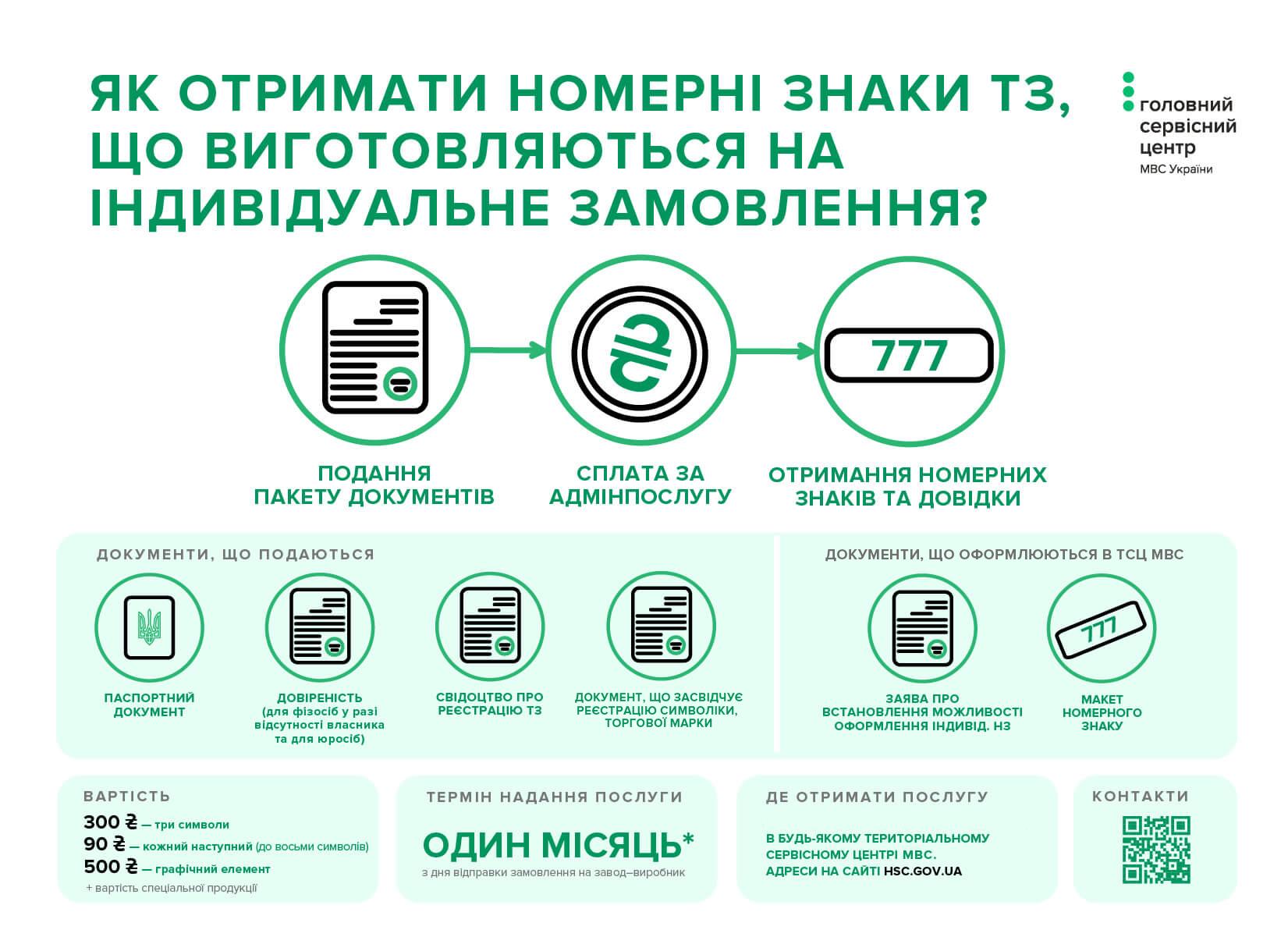 Для замовлення індивідуального номерного знака в територіальному сервісному центрі МВС